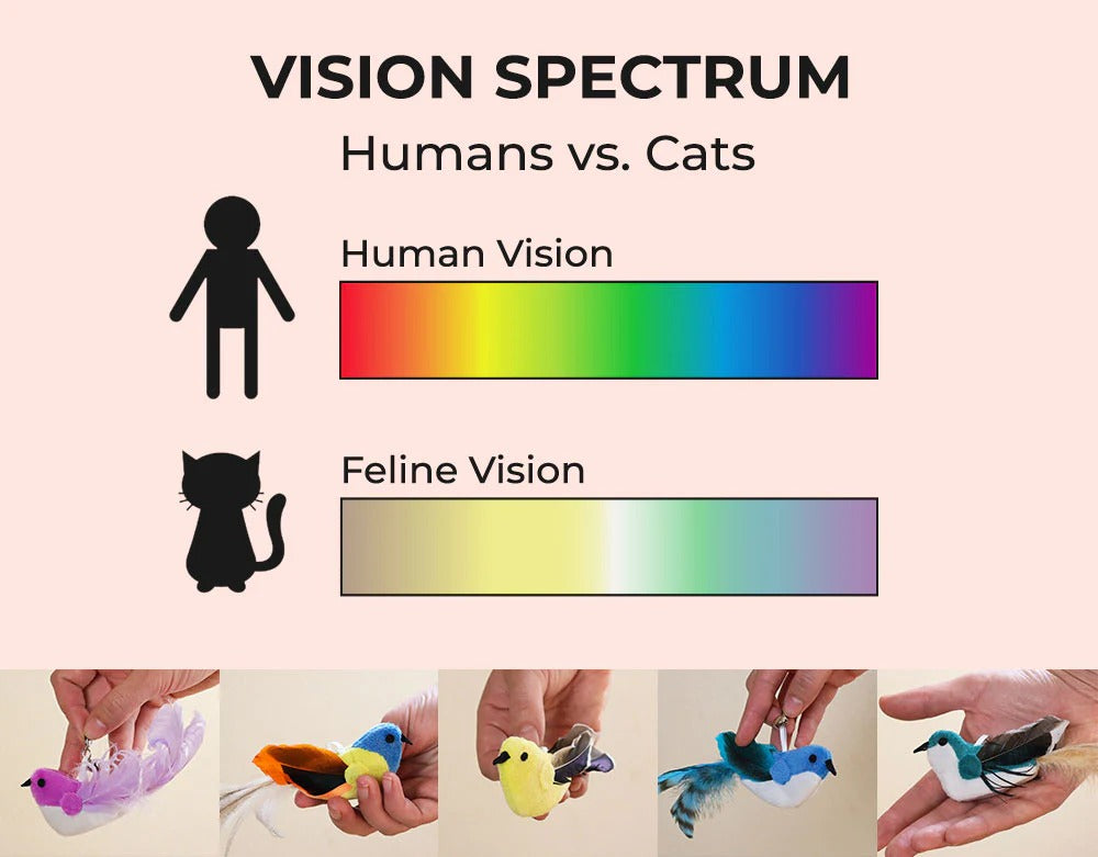 Each bird is designed with a burst of vibrant colors tailored towards your cat's unique vision, turning playtime into a visually stimulating adventure.